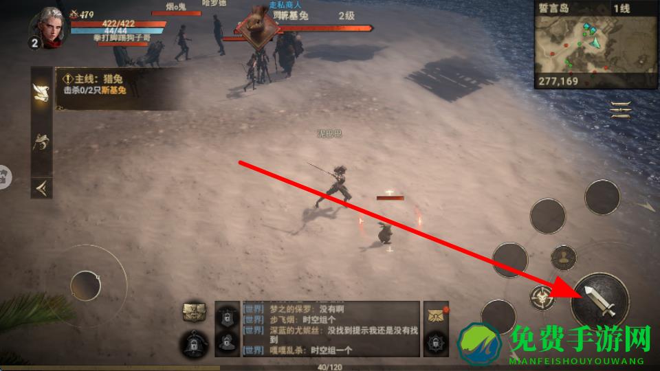 4、点击右侧攻击按钮,对敌人发起攻击,应对猎兔等任务中的敌人,持续攻击能高效完成击杀目标。