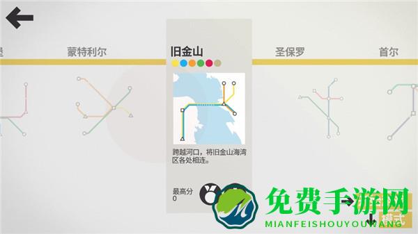 迷你地铁游戏目前已更新有纽约、上海、香港等共计20个世界各大城市的地图供我们选择,在选择界面下方彩色小圆圈表示这张地图你可以搭建的路线个数,比如这张地图可搭建路线上限为7条,下边的统计表点开后会显示世界排行榜,也可以切换到仅显示好友中排行。