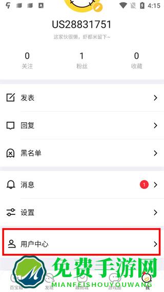2、在我的页面中进入“用户中心”