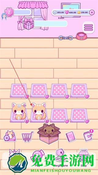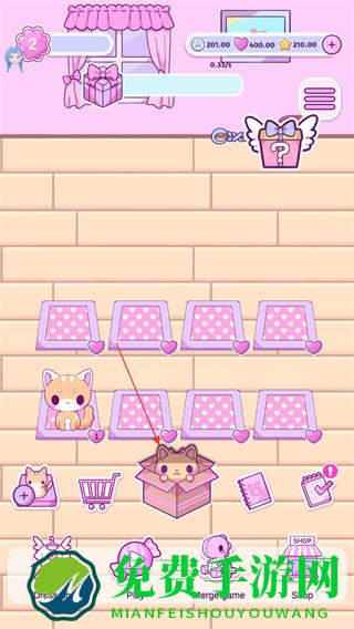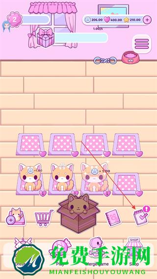 2、点击盒子里的小猫,将其放置到粉色垫子上,增加宠物数量。
