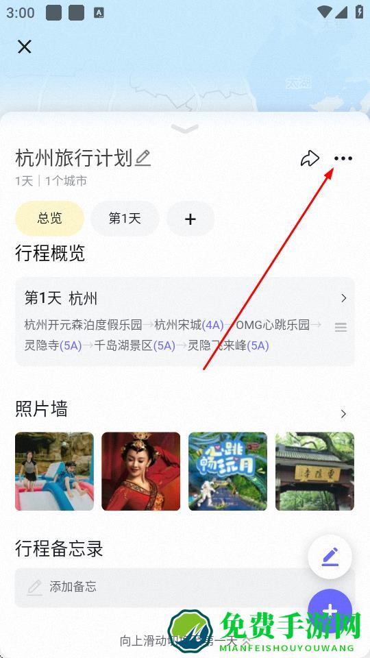 3、进入具体的旅行计划页面后,点击右上角的···图标。