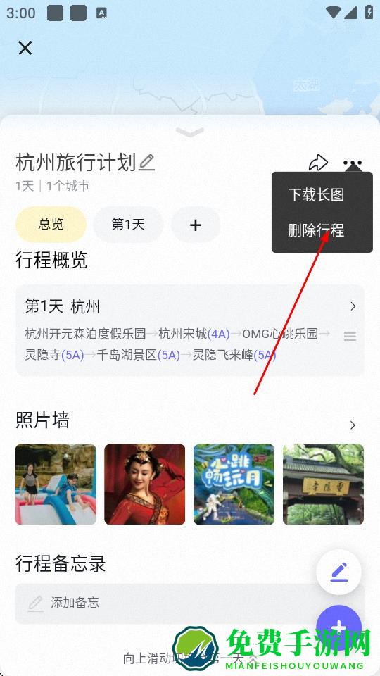 4、在弹出的菜单中,点击删除行程选项。