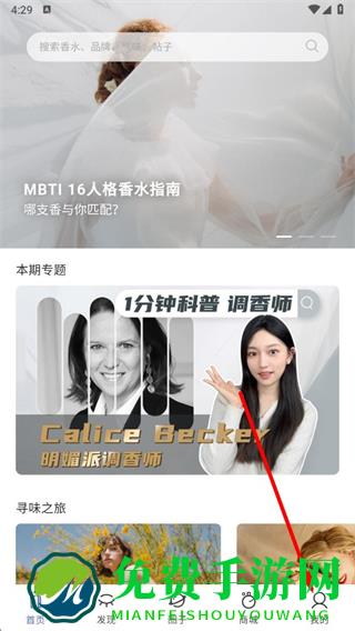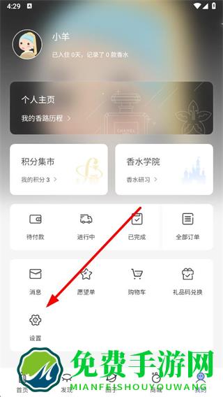1、打开香水时代app,点击底部导航栏中的我的选项。
