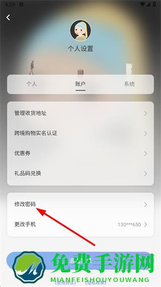 4、在账户设置界面里,点击修改密码选项。