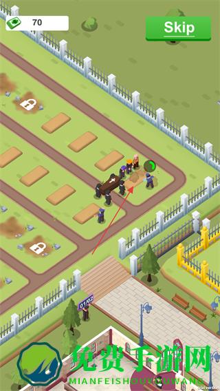 3、将灵柩搬运到墓园区域,点击指定位置,安排人员进行下葬相关操作。
