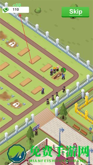 4、完成下葬任务后,获取金钱奖励如+10,金钱数值变为110,继续进行后续的殡葬业务,解锁新区域和功能。
