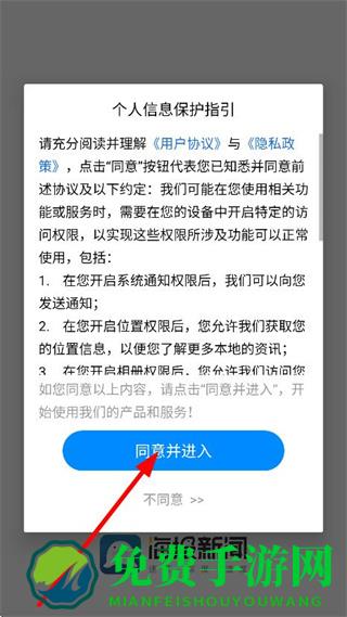 1、在个人信息保护指引弹窗中,点击同意并进入,进入软件。