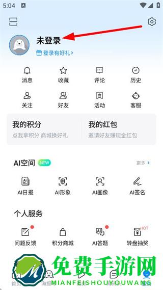 2、在软件主界面,点击未登录,进入登录相关页面。