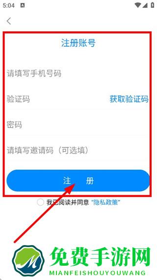 4、填写手机号码、验证码、密码等信息,点击注册,完成账号注册。