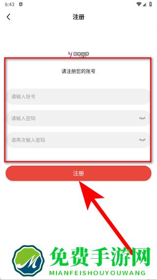 3、填写账号、密码、再次输入密码等信息后,点击注册,完成注册。