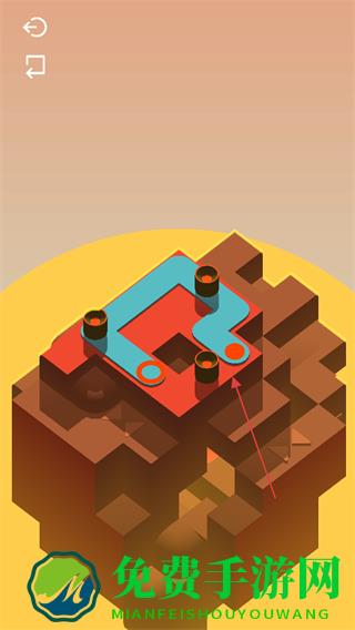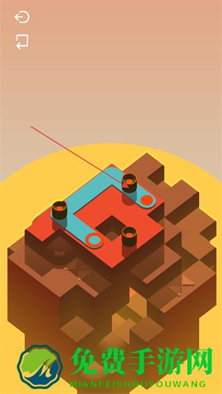2、利用场景中的机关和平台特性,规划小球滚动路线,让小球接触蓝色部件。