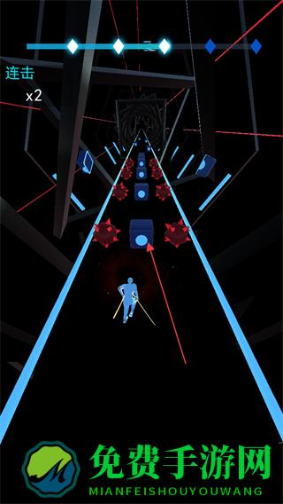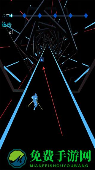 节奏宝剑是一款以音乐为核心题材的创新跑酷作品,将动感十足的旋律与紧张刺激的跑酷玩法无缝融合,玩家将化身身着未来科技战甲的科幻忍者,手握一把流光溢彩的专属宝剑,在不断向前的赛道中,需精准捕捉音乐节奏,及时切碎迎面而来的各类方块,整个过程既要求极快的手速,又考验对旋律节拍的敏锐把控。
