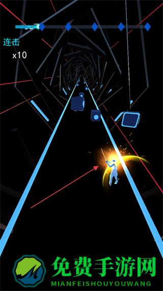 4、注意躲避红色障碍物,持续击打方块,保持连击,直至完成歌曲演奏。