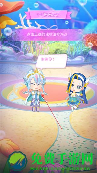 2、进入关卡如1-1救救王子,根据提示点击正确的法杖治疗海达,点击对应的法杖道具。
