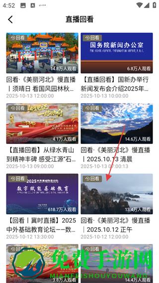 3、在直播回看列表页面,选择想看的直播回看内容,点击进入其播放页面。