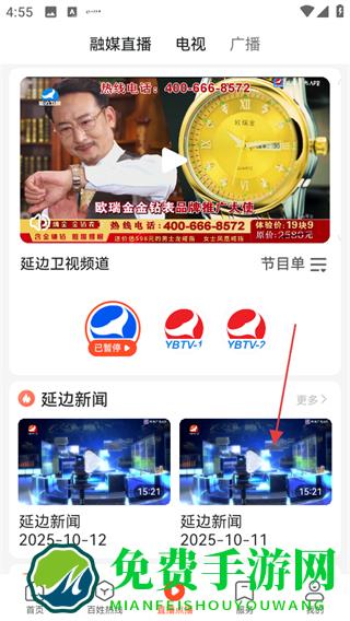 3、在电视直播相关页面,选择想看的节目,如延边新闻2025-10-11,点击进入其播放页面。