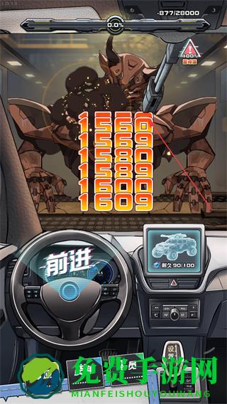 2、留意屏幕上方的血量条如耐久100/100,若怪物攻击,及时点击屏幕反击,避免车辆耐久降低过多。