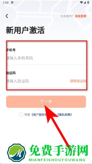 3、输入手机号和验证码,勾选协议后点击下一步。