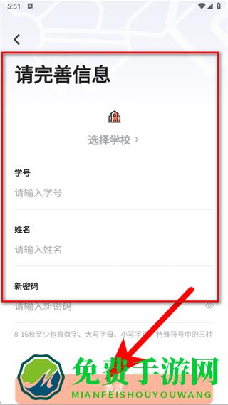 4、在完善信息页面,选择学校、输入学号、姓名和新密码,点击激活,完成注册。