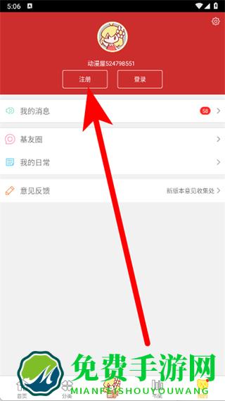 1、打开动漫屋,点击底部我的。