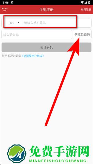3、在手机注册页面,输入手机号码后,点击获取验证码。