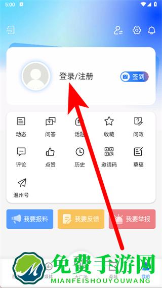 3、进入我的页面,点击登录注册。