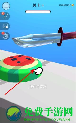 2、完成切割进程,通过持续按住切割,使刀具按路径完成对物品的切割,推进关卡进度。