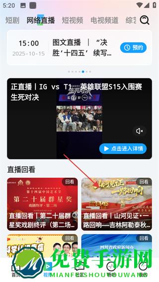 3、在网络直播页面,点击感兴趣的直播回看内容进入直播详情页。