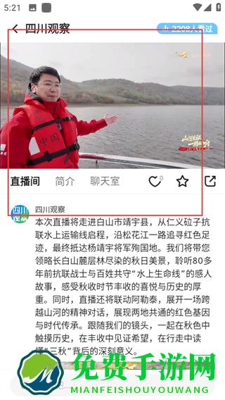 4、在直播详情页,可观看山河见证一路回响直播回放内容。