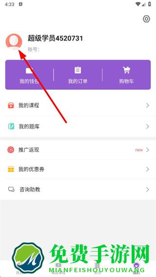 2、在我的页面,点击头像区域,进入个人资料页面。