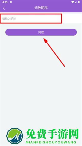 4、在修改昵称页面,输入新的昵称后点击完成按钮,即可完成名字修改操作。