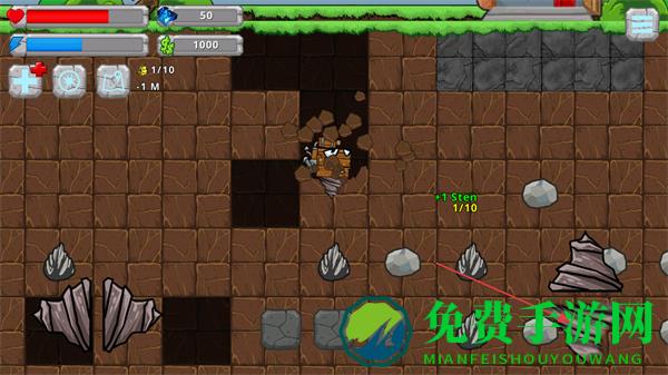 4、关注屏幕上方的资源数值如红心代表生命值、蓝色钻石等,合理利用资源保障挖掘进程。