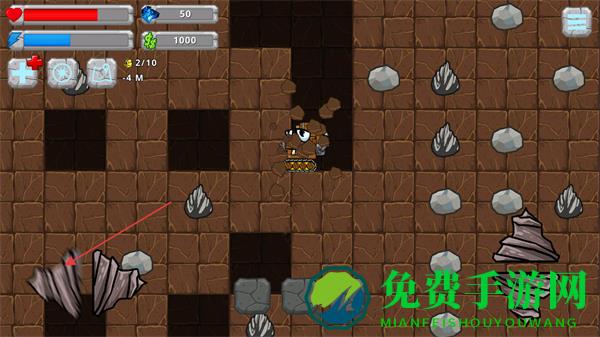 3、挖掘时会遇到石头等障碍物,规划挖掘路线,避开或击碎它们以持续向下挖掘。
