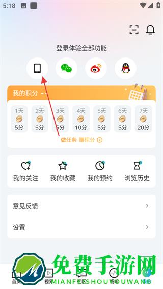 2、在个人页面,点击手机图标,进入登录四川观察页面。