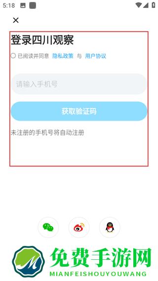 3、在登录四川观察页面,勾选协议,输入信息,完成登录流程。