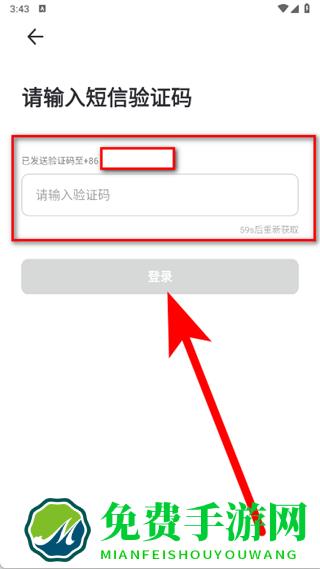 4、在短信验证码输入页面,输入验证码后点击登录,完成注册。
