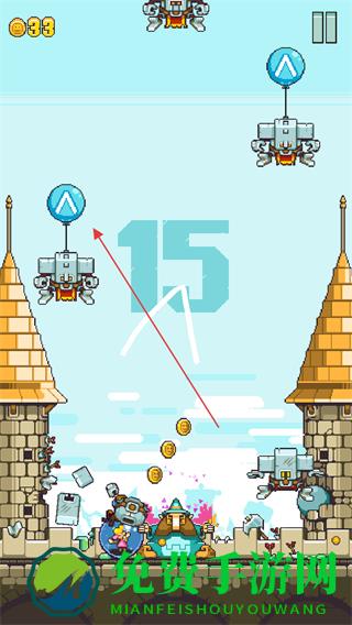 1、进入游戏,查看左上角金币数量如33,上方会出现带有标志如蓝色A标志的飞行敌人。