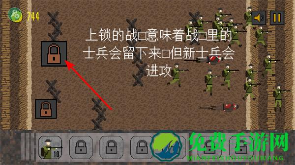 4、利用战壕锁定,了解上锁战壕的机制,上锁后战壕内的士兵会留守,新士兵继续进攻,合理运用该机制。