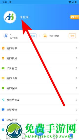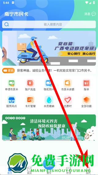 1、打开南宁市民卡,点击底部导航栏最右侧的我的,进入个人中心页面。