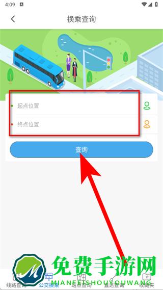 4、填写起点位置和终点位置,点击查询按钮,就能获取公交换乘方案。
