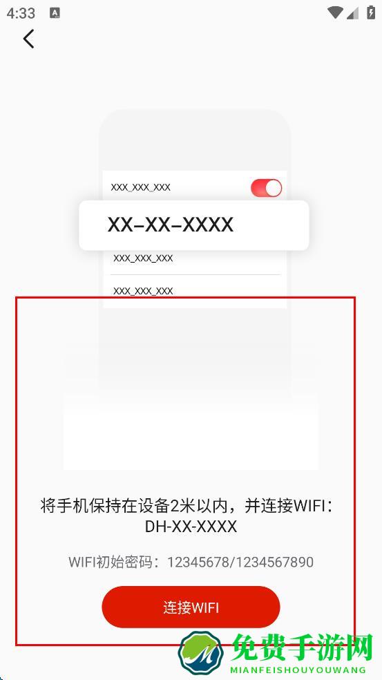 2、将手机保持在设备2米以内,然后点击“连接WIFI”按钮。