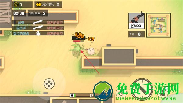 2、利用屏幕左侧的虚拟摇杆控制角色移动,右侧按钮控制射击等操作,找到并攻击臭蛋。