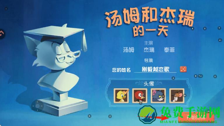1、标题汤姆和杰瑞的一天,主演汤姆、杰瑞、泰菲,有姓名刚毅超恋歌,头像选择及开始拍摄按钮。