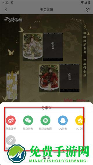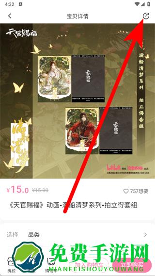 3、在宝贝详情页,若想将该商品分享给同好,点击右上角的分享图标。
