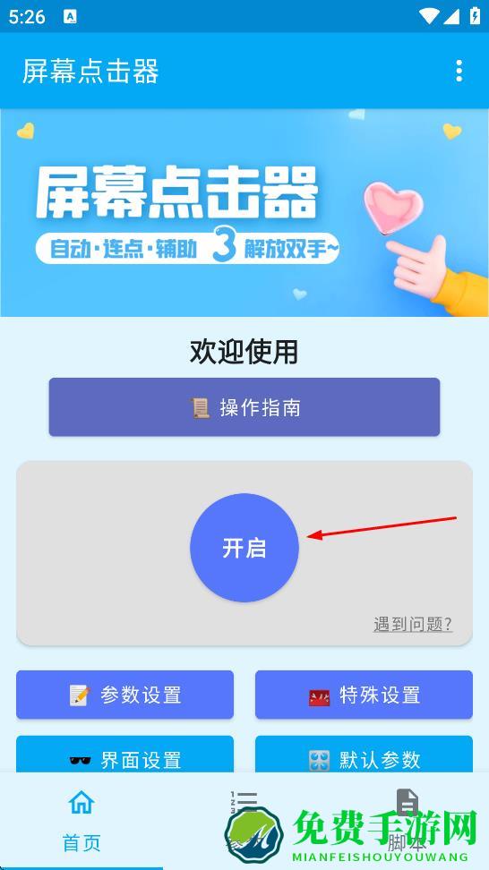 2、权限授予完成后,点击“开启”按钮,启动屏幕点击器功能。