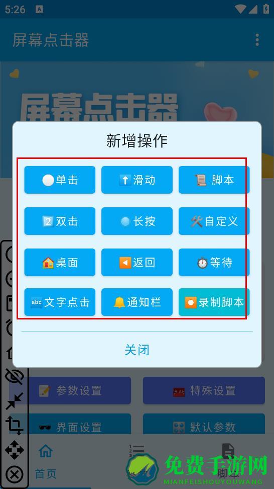 4、在“新增操作”选择框中,选择需要的操作类型(如单击、滑动等),即可进行相应的屏幕点击操作设置。