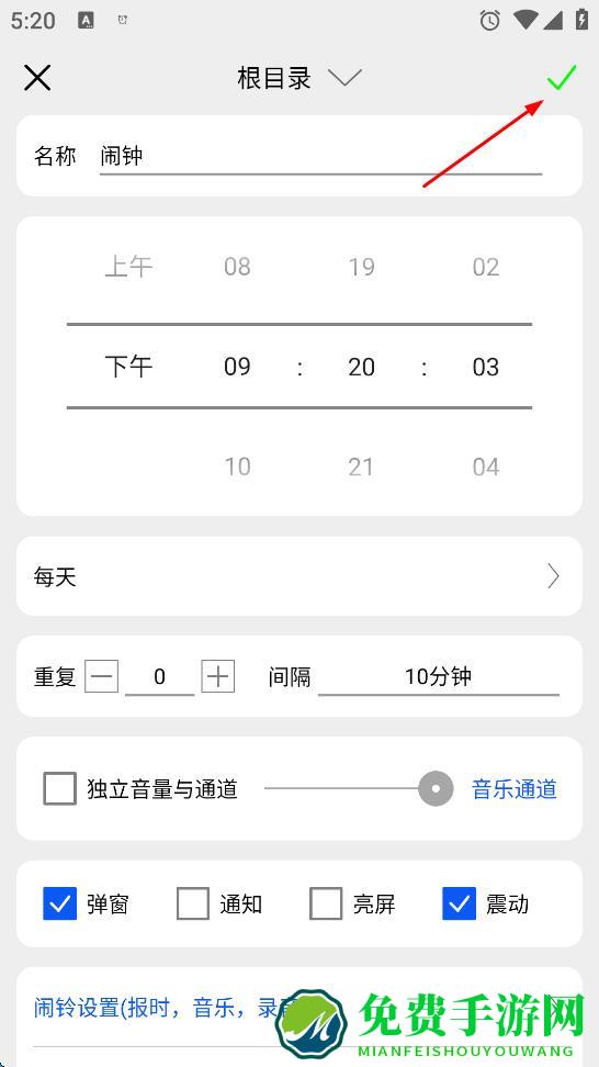 1、支持着自定义的功能我们可以来设置闹钟响几次;