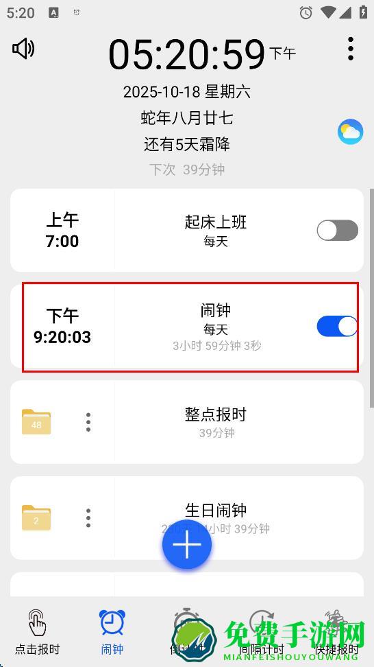 4、设置完成后,退出设置页面,APP将按照设定的整点时间进行报时。