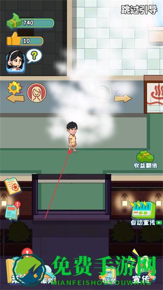 4、设施解锁后,等待客人进入浴室消费,可通过自动宣传等功能吸引更多客人。