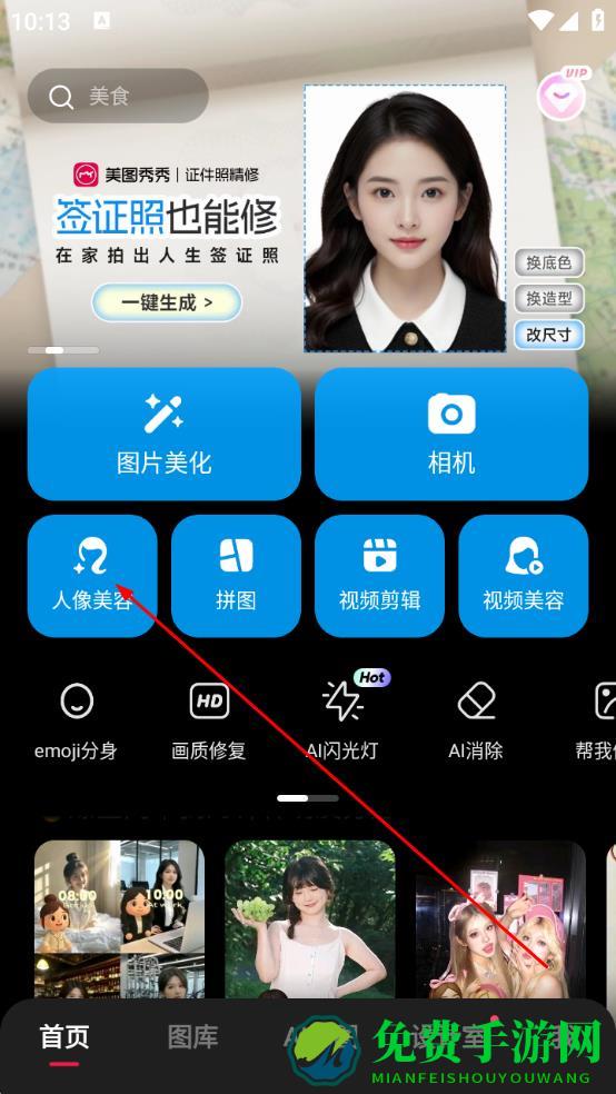 1、打开美图秀秀APP,在首页点击人像美容功能按钮,进入人像美容操作流程。